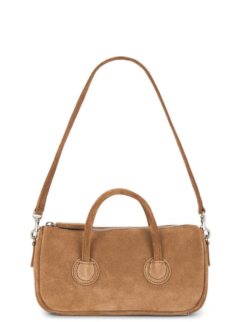 - Suede exterior and twill lining - Top zip closure - One main compartment - One interior slip pocket - Measures approx 9" W x 6.5" H x 4" D Shoulder strap with a 4" drop - Revolve Style No. MGES-WY33 - Manufacturer Style No. FF047667