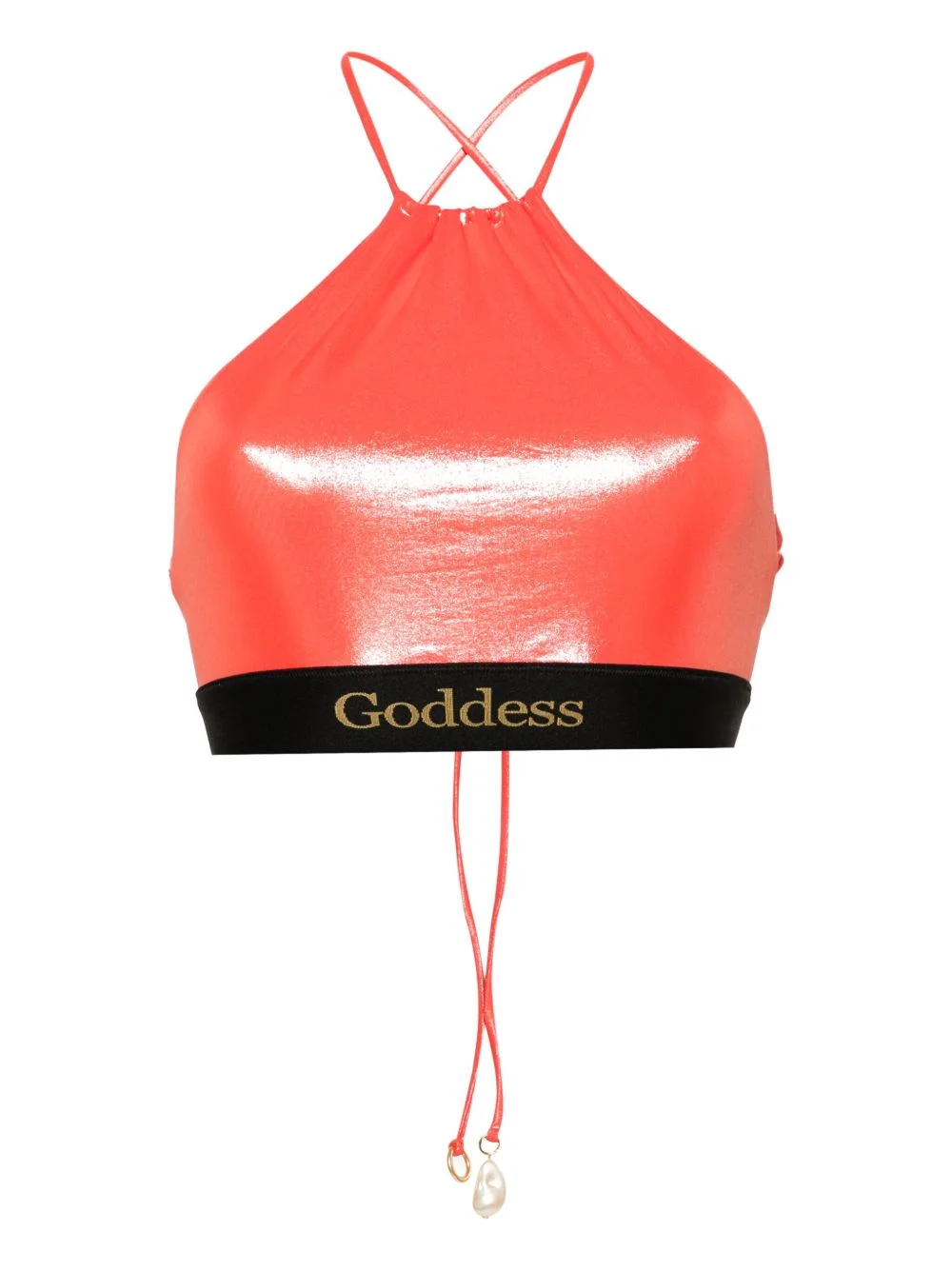 Zaha bikini top Highlights - Coral - Stretch-design - Shimmer finish - Gathered tie neck - Elasticated logo underband - Rear criss-cross straps - Rear tie fastening - Rear clasp fastening - Be mindful to try on swimwear over your own garments. Imported Composition Nylon 80%, Spandex/Elastane 20% Washing instructions Hand Wash