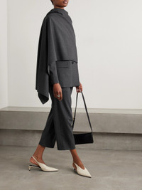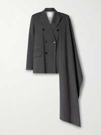 Maria McManus' double-breasted blazer has a dramatic panel that drapes fluidly down one side and can be detached if you're going for a more streamlined look. It's cut for a slightly loose fit from pinstriped wool-blend and padded along the shoulders for structure.