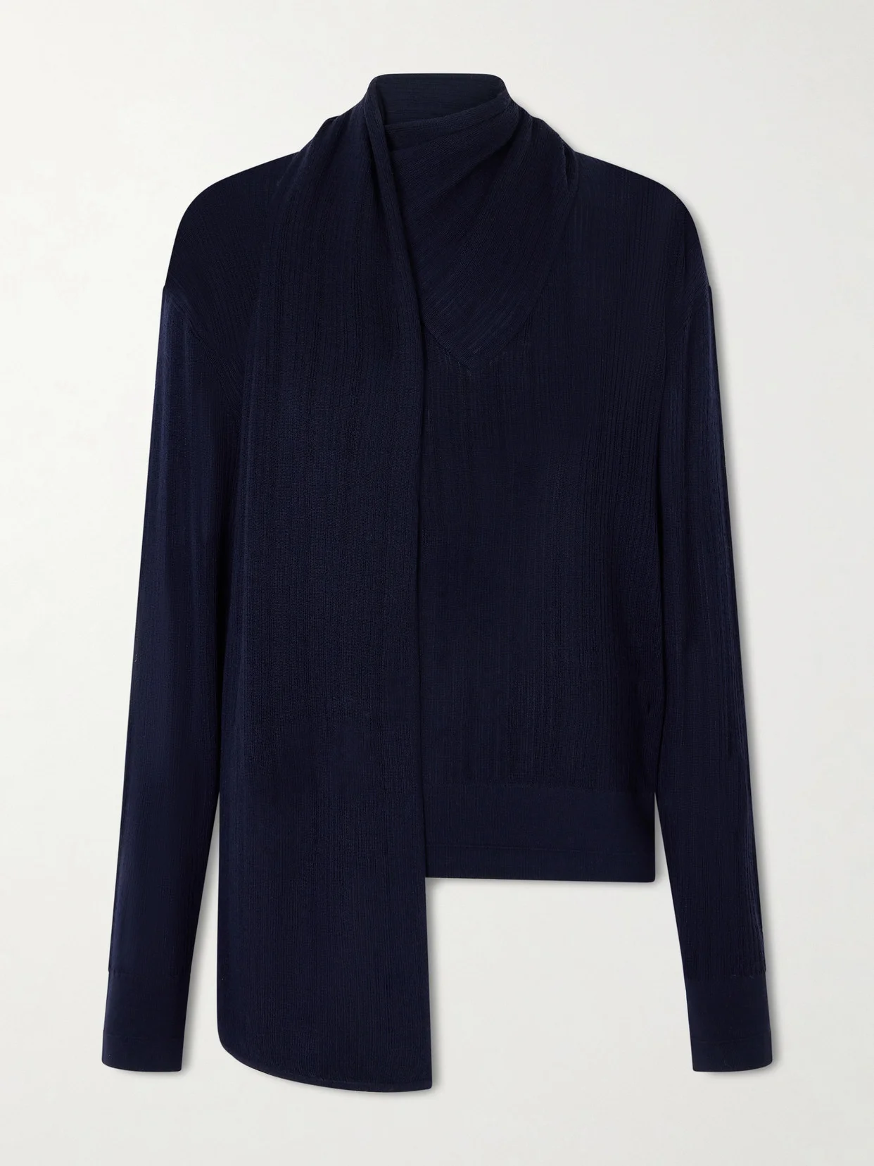 Maria McManus' sweater has a chic scarf-effect neckline so you can nail the layered look, effortlessly. It's rib-knitted from soft merino wool for a lightweight handle and fits slightly relaxed.