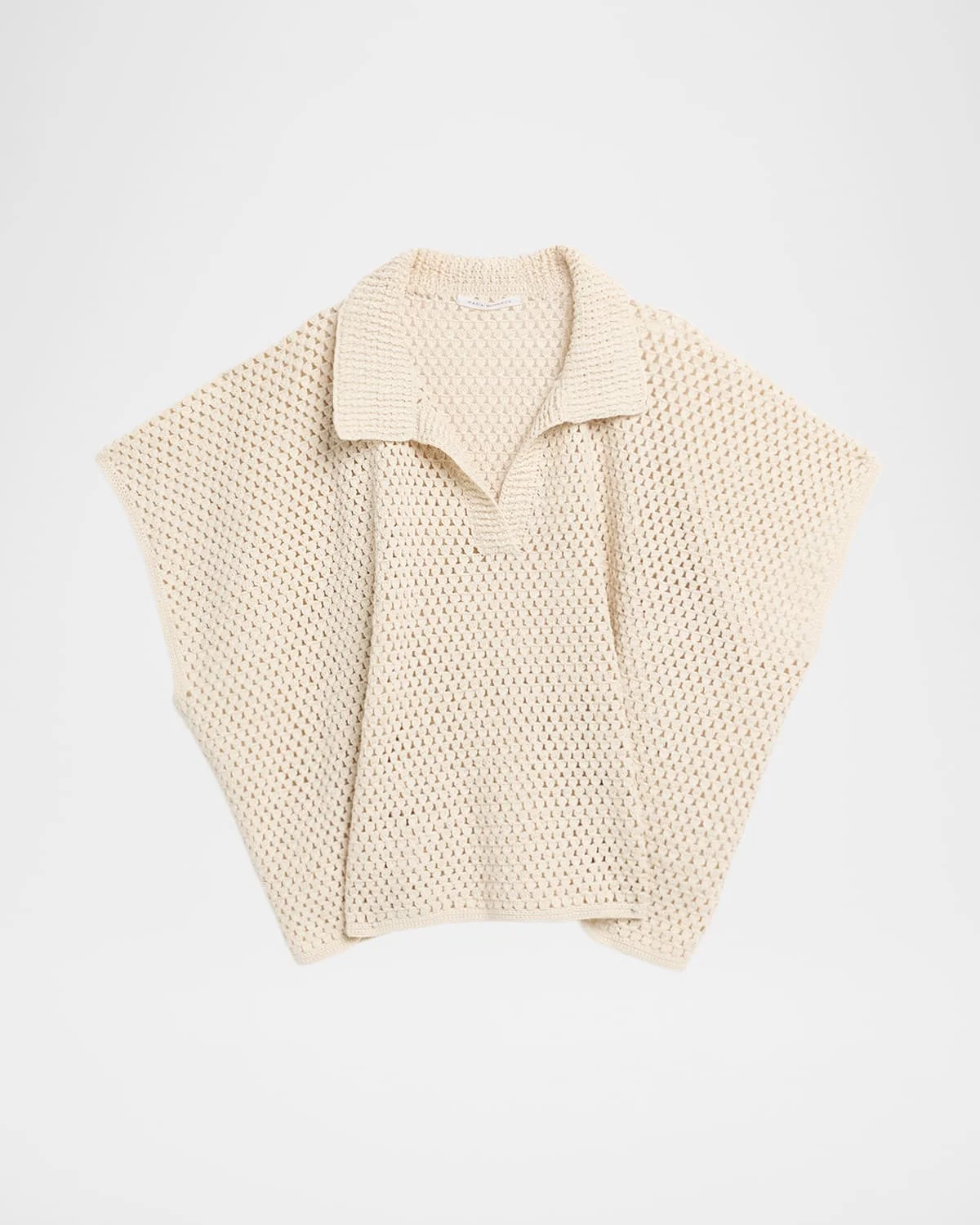 - MARIA MCMANUS cape-like polo top in hand crochet knit - Spread collar; split V front - Short sleeves - Wide fit - Pullover style - Organic cotton - Imported
