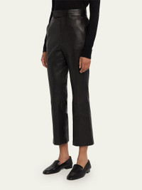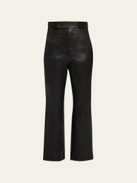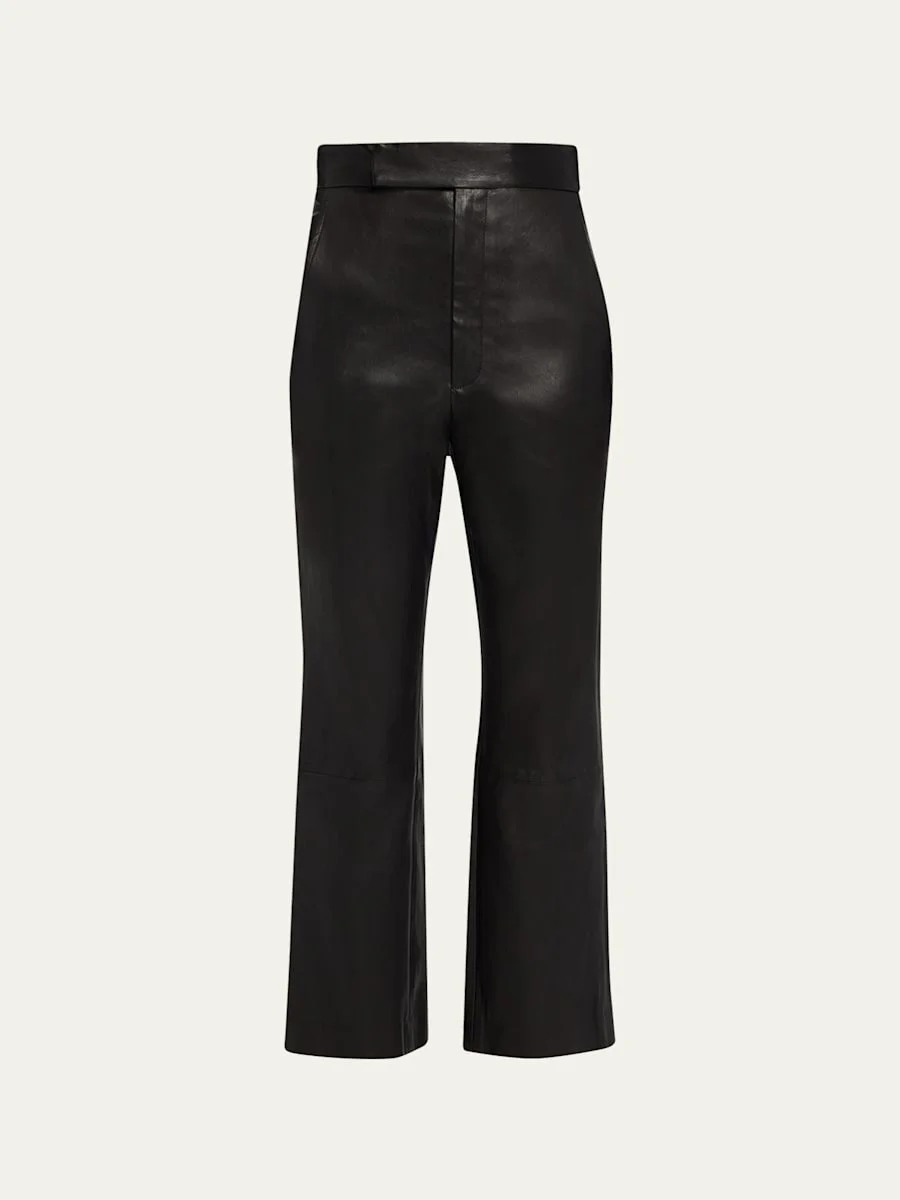 MARIA MCMANUS calfskin leather trousers High waist Front slash pockets; back slit pockets Flare legs Cropped at the ankle Extended tab/zip fly; belt loops Professional cleaning recommended, spot clean Made in USA from imported materials Model is 5'10"/177cm. Online Inquiries: BGS21_B8UQF| Store Inquiries: #4654413