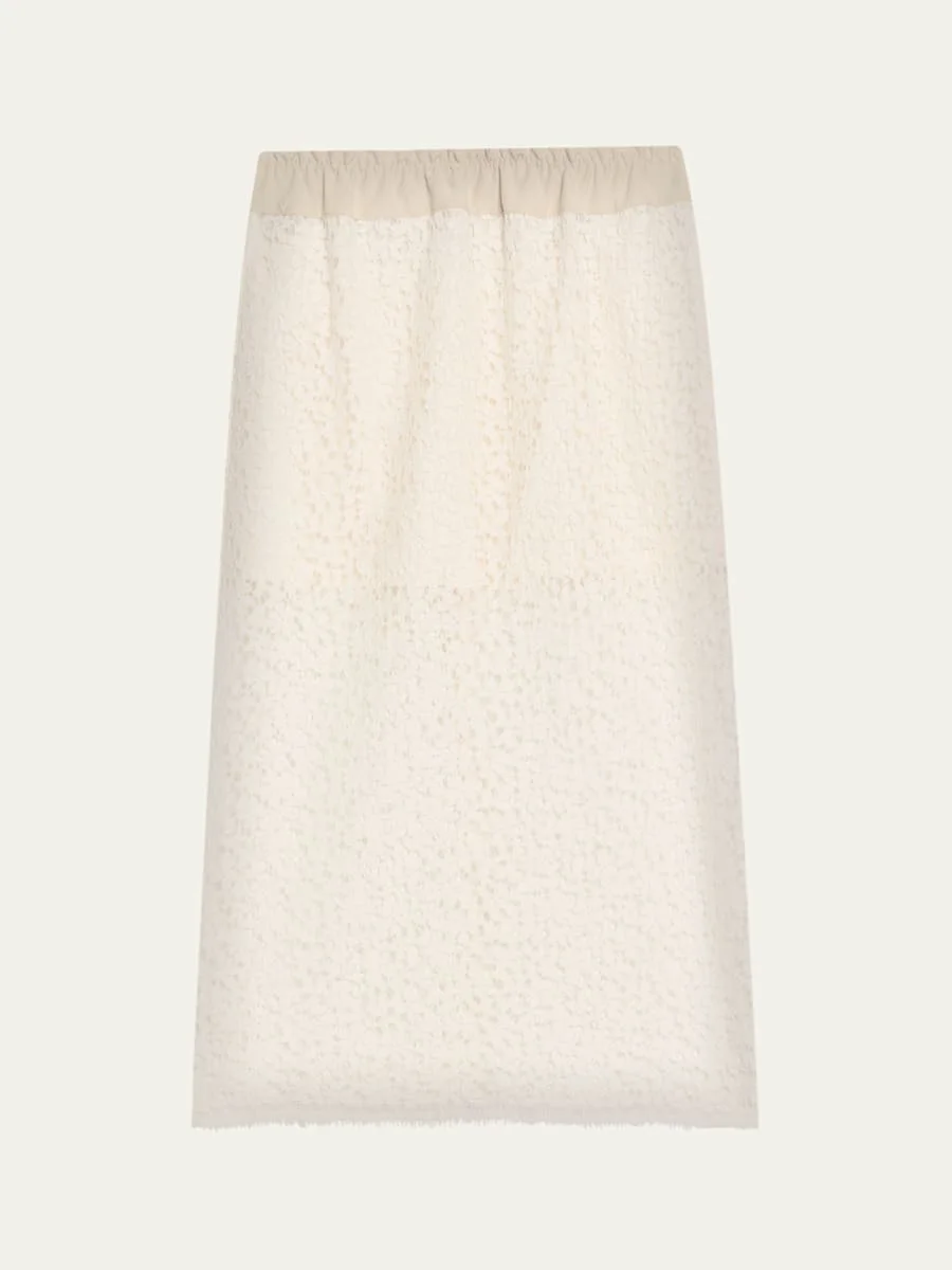 MARIA MCMANUS skirt designed with intricate lace detailing and ruching Sits high on the waist Hem hits around the knee Pencil silhouette Slit Length (inches): 13 3/4 Cotton/viscose Made in USA from imported materials Online Inquiries: BGS21_B9YLH| Store Inquiries: #5002571