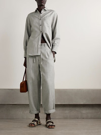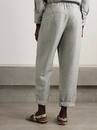 Maria McManus' pants are equally comfortable and chic. Made from breathable linen, cotton and wool-blend twill, they have a high waist threaded with a drawstring and relaxed legs with rolled cuffs. Wear yours with a tucked-in tank and sandals. Size & Fit - Fits true to size, take your normal size - High-rise, cut for a relaxed fit - Drawstring waist, designed for a comfortable fit - Lightweight, non-stretchy fabric - Model is 180cm/ 5'11" and is wearing a size Small Model measurements: - Bust: 81cm/ 32" - Waist: 64cm/ 25" - Hip: 89cm/ 35" Details & Care - Light-gray melange linen, cotton and wool-blend twill - Pull on - 48% linen, 42% cotton, 10% wool