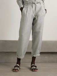 Linen, cotton and wool-blend twill pants Light gray