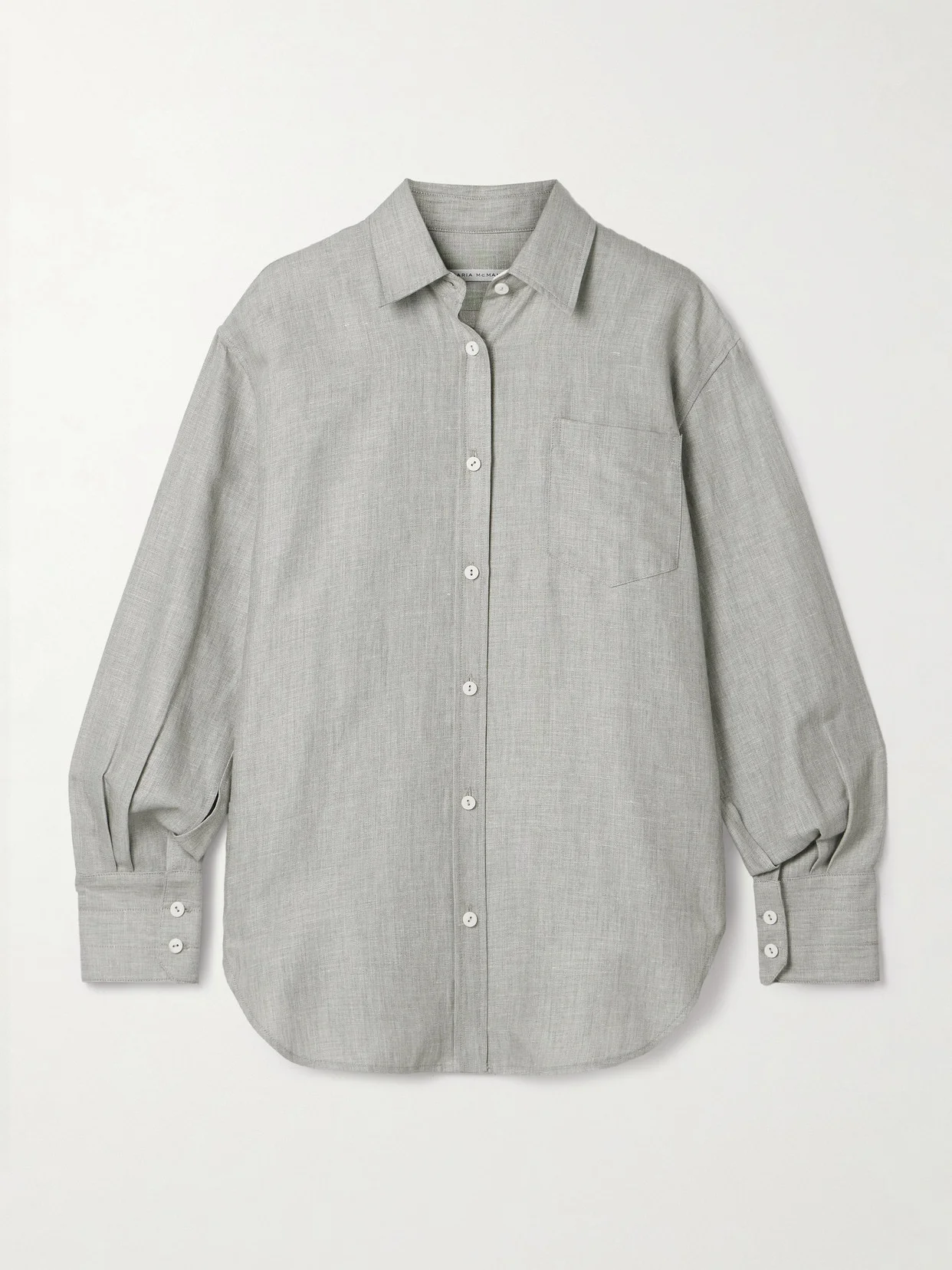Maria McManus' clothing is fully traceable from raw materials to final result, ensuring the highest quality product. This shirt is tailored from lightweight linen, cotton and wool-blend twill with a subtle melange finish. The rounded hem ensures smooth tucking.