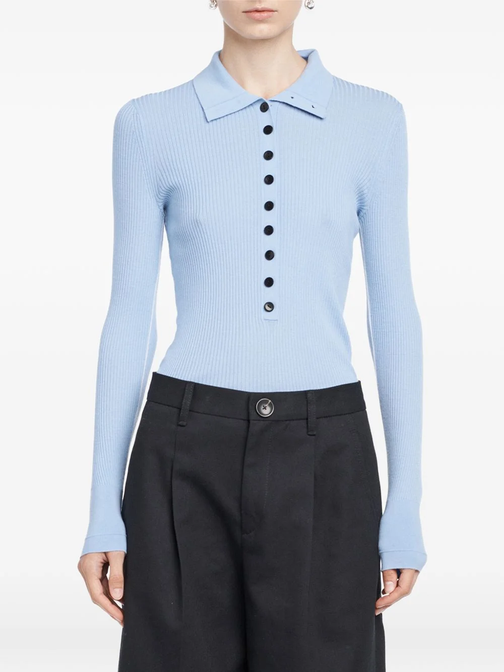 long-sleeve button polo shirt Highlights - Blue - Long sleeve - Button detail Imported Composition RWS Merino Wool 100% Washing instructions Read Manufacturer Guidelines