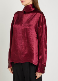 Info & Care Maria McManus;satin blouse Scarf-effect ties at round-neck, dropped shoulders, button-fastening cuffs, keyhole at back, longer back hem, crinkled finish Button fastening at back 100% acetate Dry clean Size & Fit Length shoulder to hem: 24 inches/ 61cm; back: 26 inches/ 66cm Midweight Relaxed fit Model is 5'9"/ 175cm and wears a size small