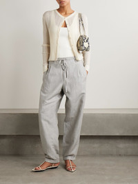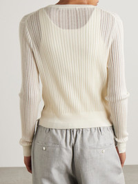 Ribbed pointelle-knit merino wool cardigan Ivory