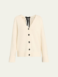 Crafted from recycled cashmere and organic cotton knit, this cardigan from MARIA MCMANUS features a contrast ribbon bow and back keyhole V neckline; button front Long sleeves Slit cuffs Loose fit Hem falls below the hip Ribbed cuffs and hem Cashmere/organic cotton Hand wash or dry clean Imported SIZE amp; FITModel measurements: 5'10" tall Model is wearing a US size 4/Small