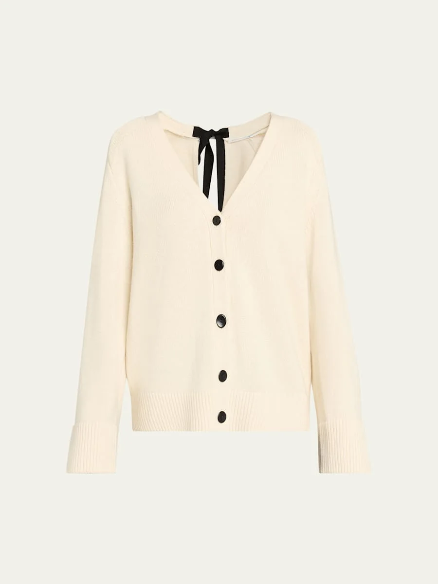 Ribbon Cashmere-Cotton V-Neck Cardigan
