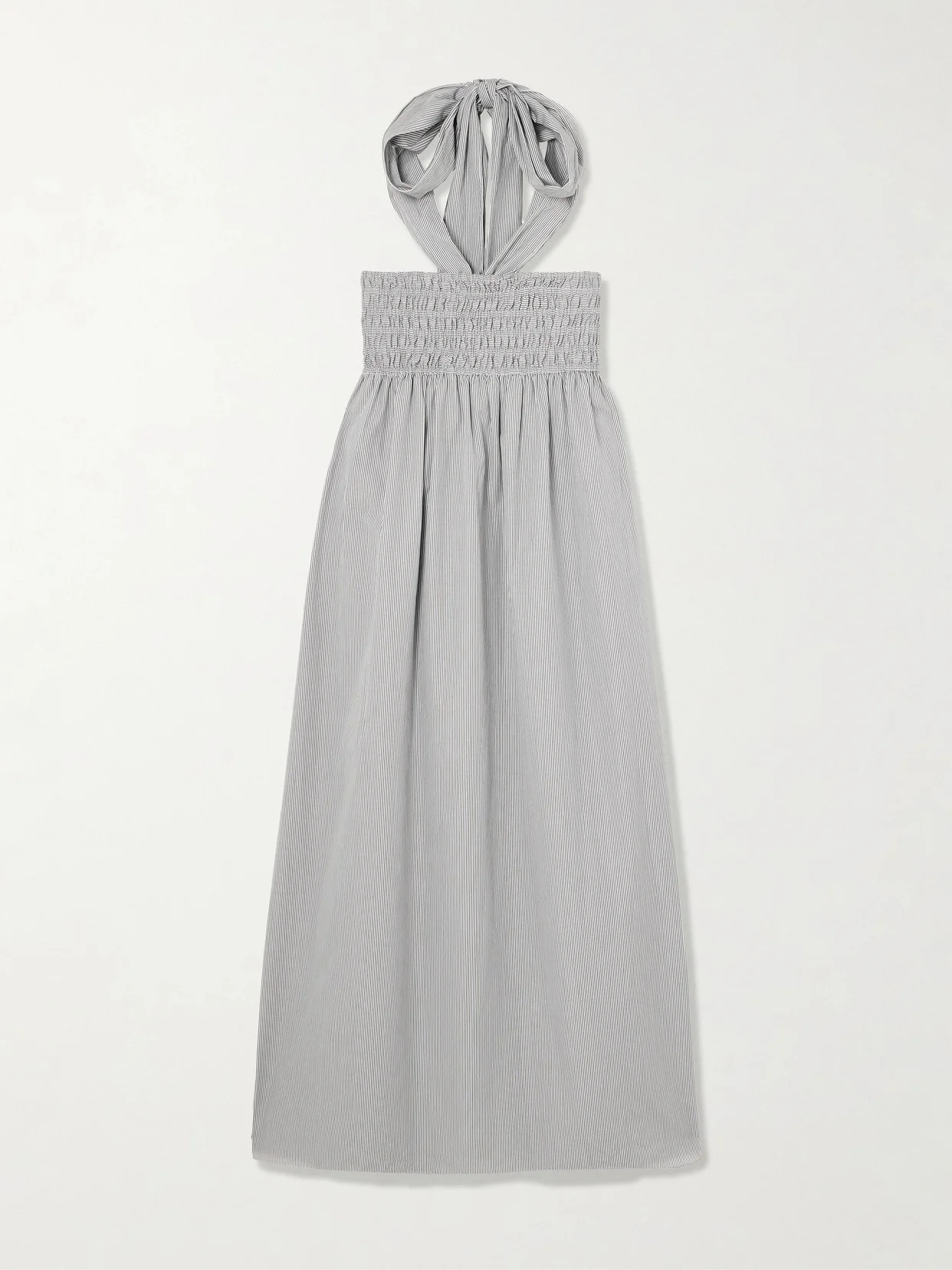 Smocked Pinstriped Poplin Halterneck Midi Dress