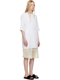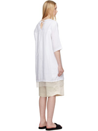 Semi-sheer organic linen voile minidress. · Round neck · Seam pockets · Handcrafted macrame trim at hem · Dropped shoulders · Self-tie keyhole at back · Twin pleats at back yoke · Full voile lining Supplier color: White Body: 100% organic linen. Trim: 100% organic cotton. Lining: 100% rayon. Made in Portugal 251399F052003