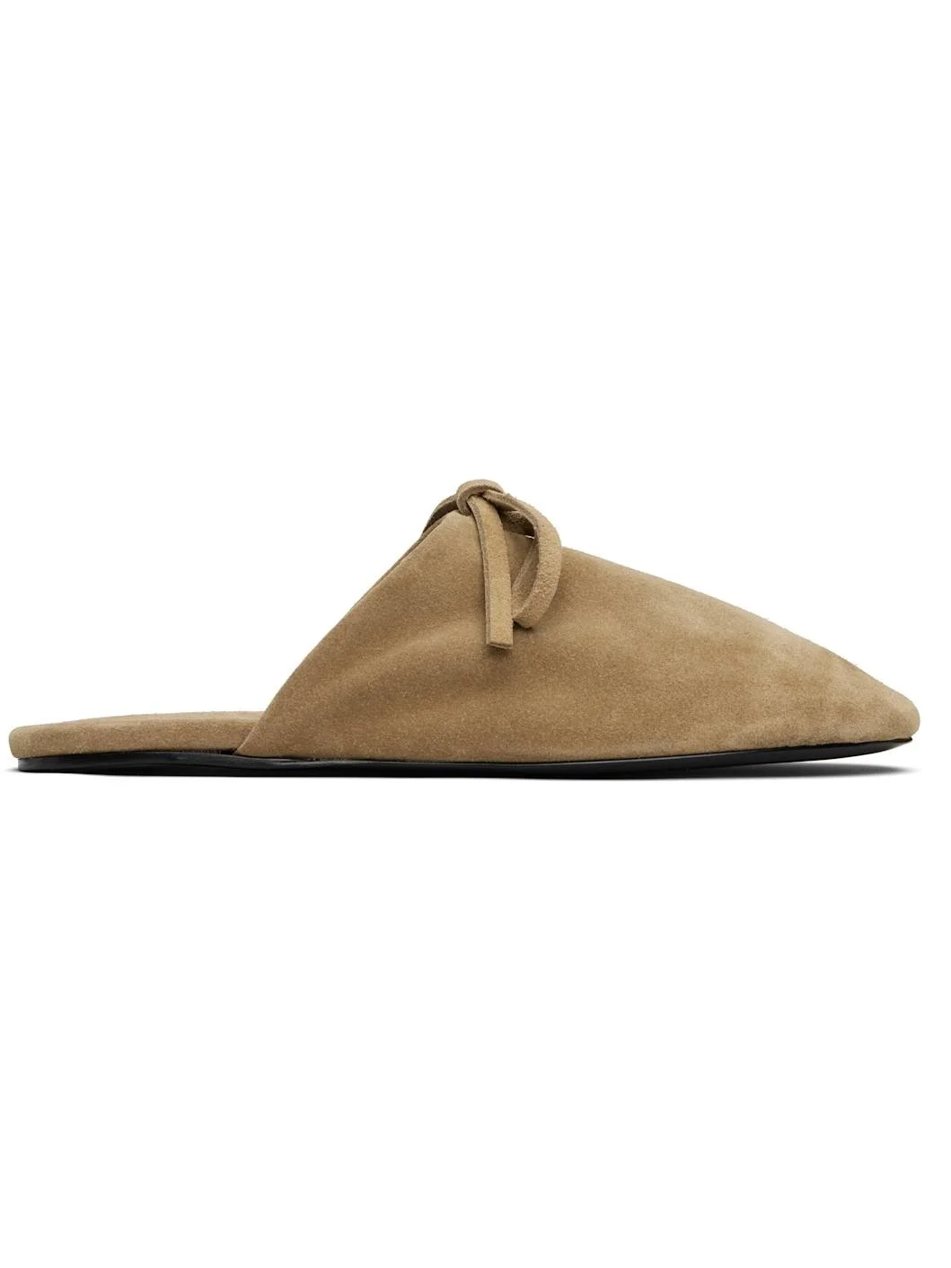 Beige Bow Suede Slippers