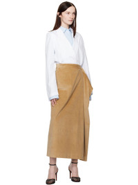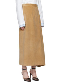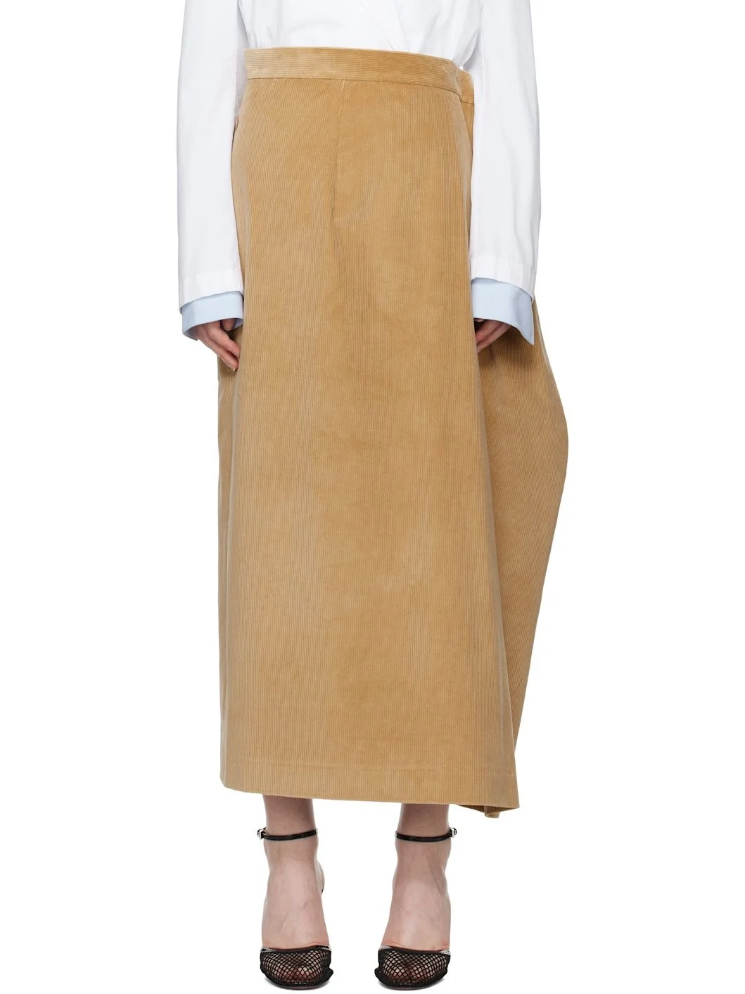 Stretch cotton corduroy midi skirt. · Button fastenings at waistband · Darts at front and back waist · Two-pocket styling · Central vent at back hem · Full satin lining Supplier color: Beige Body: 98% cotton, 2% polyurethane. Lining: 100% viscose. Made in Romania 251189F092001