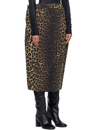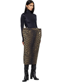Stretch nylon jersey midi skirt. · Modified construction · Leopard pattern printed throughout · Extended pinched side seams · Zip closure at back · Central vent at back hem · Fully lined Supplier color: Leopard Body: 73% polyamide, 27% elastane. Lining: 100% cupro. Made in Romania 261189F092001
