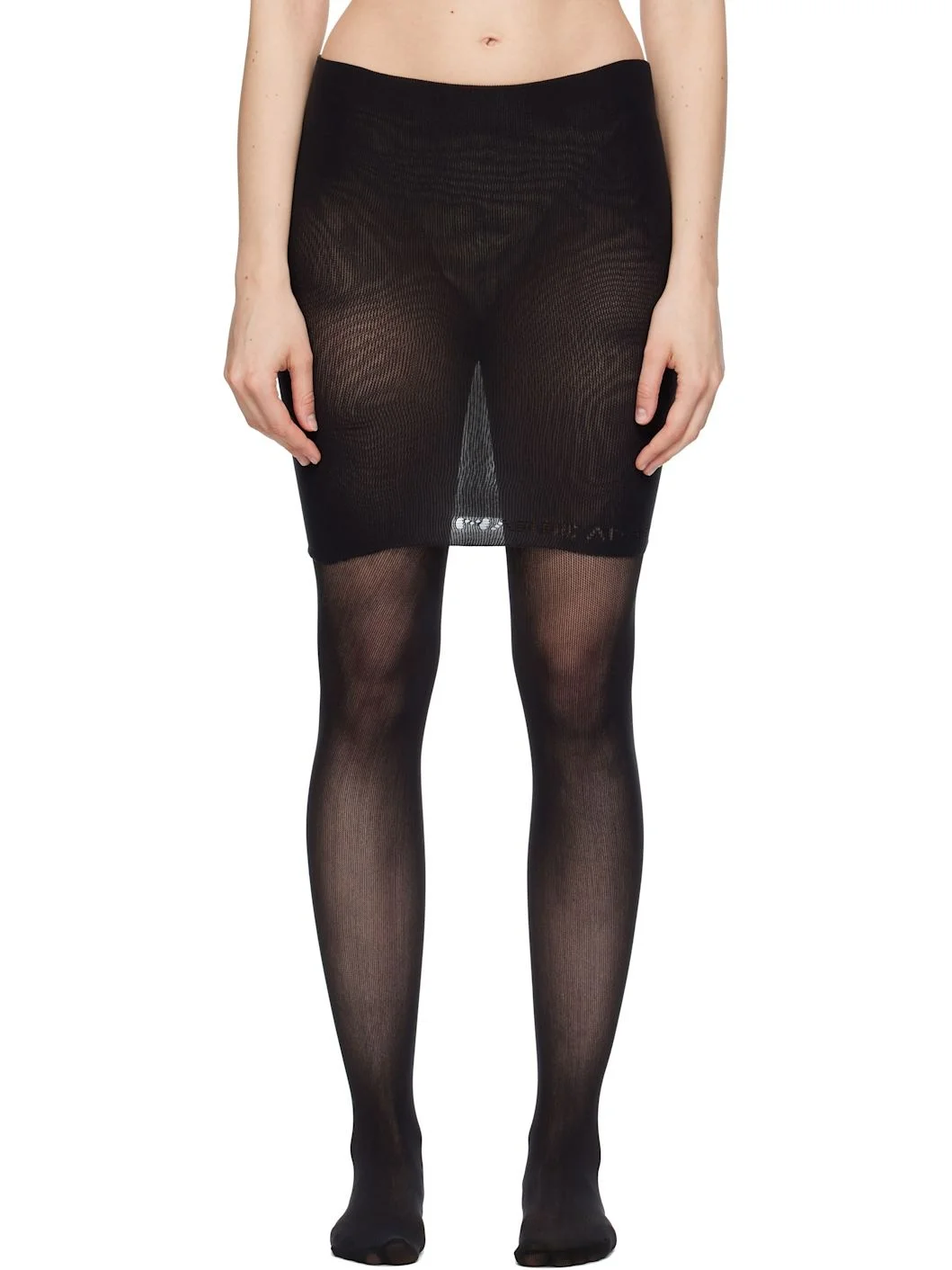 Semi-sheer nylon ribbed jersey miniskirt. · Layered construction · Elasticized waistband · Integrated ribbed jersey tights Supplier color: Black 100% nylon. Made in Italy 252189F090005