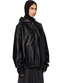 Grained leather jacket. · Zip closure · Patch pockets at front · Bungee-style drawstring at hem · Dropped shoulders · Elasticized cuffs · Full satin lining Supplier color: Black Body: 100% leather. Lining: 100% cupro. Made in Romania 261189F064000