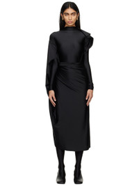 Stretch nylon jersey jumpsuit. · Wrap and layered construction · Mock neck · Self-tie fastening at waist · Asymmetric hem · Extended trim at side seams Supplier color: Black 80% polyamide, 20% elastane. Made in Romania 241808F054008
