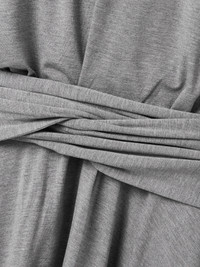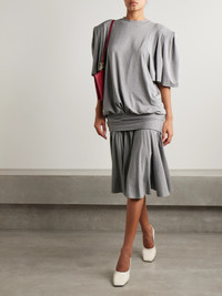 The classic T-shirt serves as the starting point for much of Marie Adam-Leenaerdt's Resort '25 collection - this dress injects the silhouette with bold proportions and sculptural details. Cut from gray melange cotton-jersey, it has angular padded shoulders and a gathered skirt.