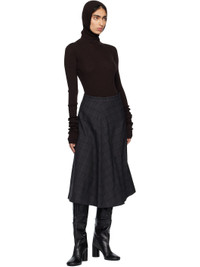 Wool delaine midi skirt. · Check pattern throughout · Integrated dual-hem construction · Pencil skirt at front · Flared skirt at back · Zip closure at back Supplier color: Grey check 100% wool. Made in Romania 261189F092000
