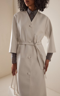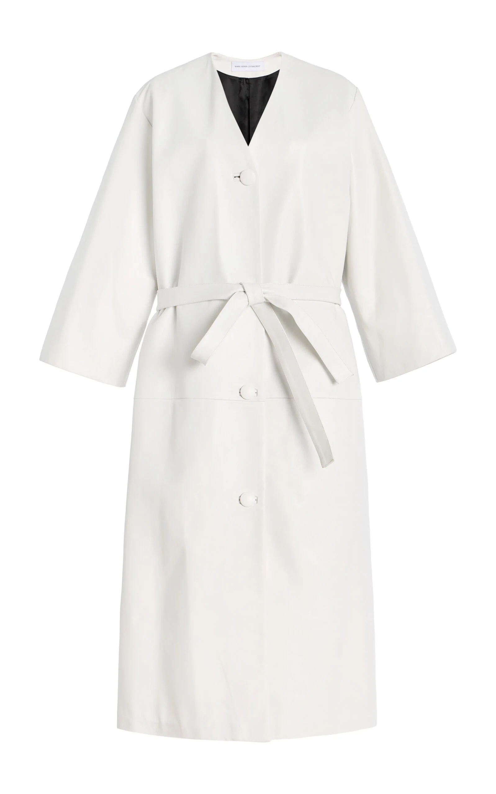 Furthering the heritage of iconic Belgian fashion, Brussels-born designer Marie Adam-Leenaerdt's eponymous label's mission is to "question conventions, giving strength to the garments and surpass seasons, trends, and generations." PRODUCT DETAILS - Pre-Fall '25 - Button fastenings through double-breasted front - Composition: 100% leather; lining: 100% cupro - Dry clean - Imported