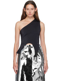 Stretch nylon jersey tank top. · Darts at chest · Single-shoulder · Asymmetrical hem · Fully lined Supplier color: Black 80% polyamide, 20% elastane. Made in Belgium 242189F111002