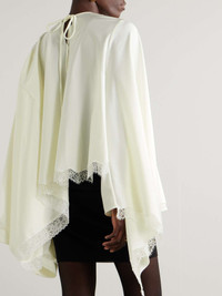 Marie Adam-Leenaerdt is celebrated for her fresh, unconventional approach to design - this blouse takes cues from traditional lingerie underskirts. It's made from lustrous satin trimmed in delicate scalloped lace and has asymmetric sleeves that cascade beautifully. Size & Fit - Fits true to size, take your normal size - Intended for a loose fit - Designed to e worn multiple ways - Lightweight, stretchy fabric - Model is 180cm/ 5'11" and is wearing a FR 36 Model measurements: - Bust: 81cm/ 32” - Waist: 62cm/ 24.5” - Hip: 88cm/ 34.5” Details & Care - Ivory satin and lace - Slips on - 80% polyamide, 20% elastane - Hand wash