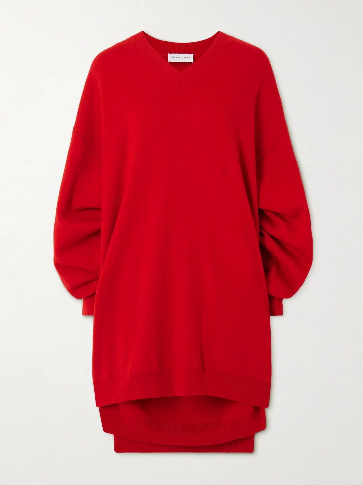 Marie Adam-Leenaerdt's collections are designed with a focus on specific details and the particular cut. Debuted on the Fall '24 runway, this dress is made from layers of bright-red wool that peek out at the hem. The loose shape is pinched at the sides to create an unexpectedly fitted reverse.