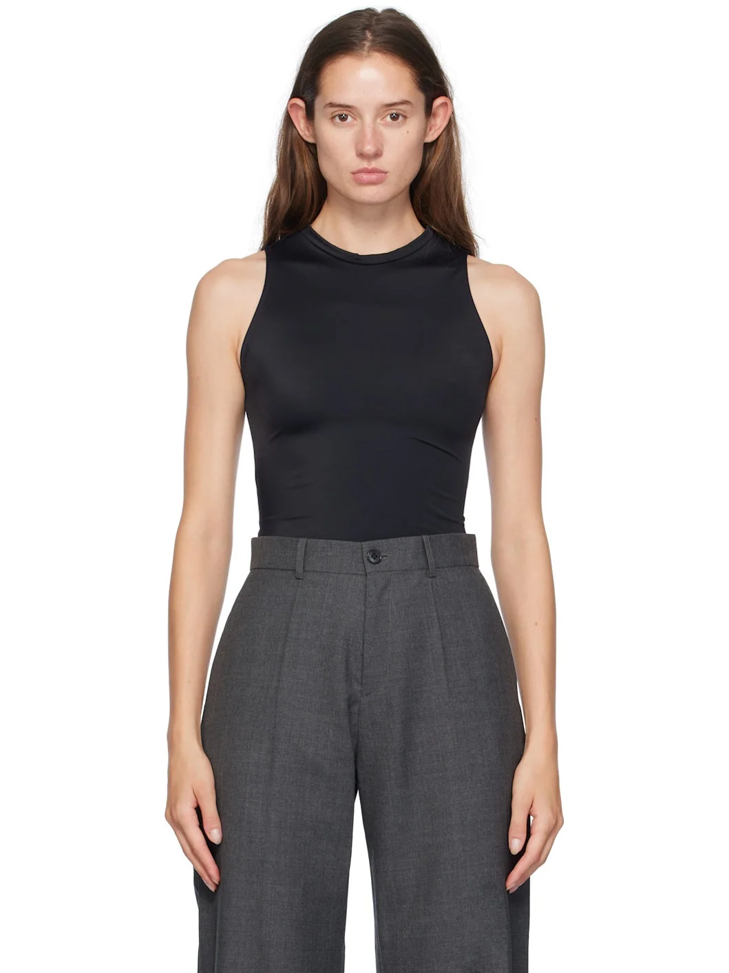 Stretch polyester jersey tank top. · Round neck · Keyhole with self-tie fastening at back Supplier color: Black 78% polyester, 22% elastane. Made in Belgium 242189F111001