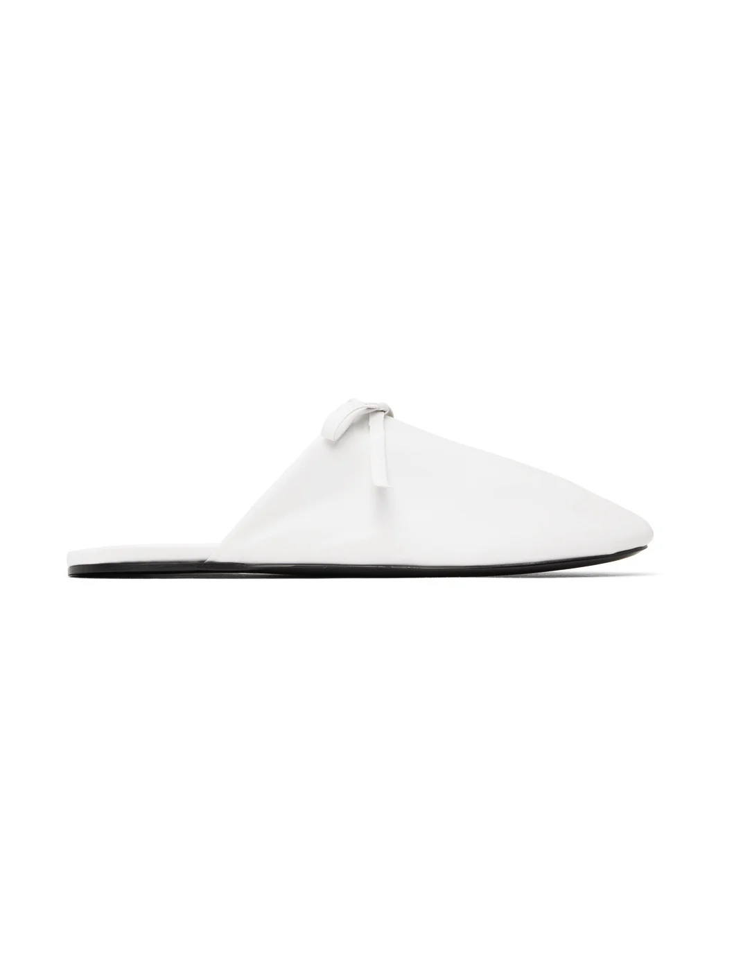 Nappa leather slippers in white. · Bow accent at vamp · Padded leather footbed · Nappa leather lining · Leather sole with rubber injection Supplier color: White Upper: leather. Sole: leather, rubber. Made in Italy 242189F121000