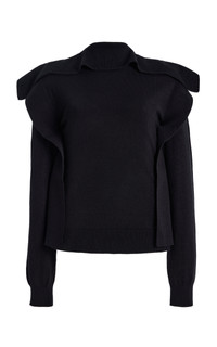 Furthering the heritage of iconic Belgian fashion, Brussels-born designer Marie Adam-Leenaerdt's eponymous label's mission is to "question conventions, giving strength to the garments and surpass seasons, trends, and generations." Made from a compact-knit wool-blend, this sweater features a square body that creates an elegant ruffle around the bodice. PRODUCT DETAILS - Resort '26 - Slip on - Composition: 50% wool, 50% acrylic - Dry clean - Made in Italy