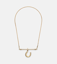 Marie Lichtenberg channels timeless romance through contemporary craftsmanship, creating pieces rich in meaning and refined detail. This necklace is crafted from 18kt gold (750/1000) with a 500mm leather lasso, complemented by a dangling Horseshoe pendant adorned with six shimmering pave diamonds. Product Details - Material: 18kt yellow gold (750/1000), leather - Made in Thailand - Item color: gold, brown - Color: brown - Stone I: 6 diamonds, 0.09ctw, round-cut, pave setting, SI1 clarity grade, H color grade - This piece features natural diamonds only - diamond - Item number: P01118658 Size & Fit - Length when open 43,5cm-17" - Length when open 56cm-22" - Max. width 4mm-0.15" - Pendant length 34mm-1.35" - Pendant width 65mm-2.55"
