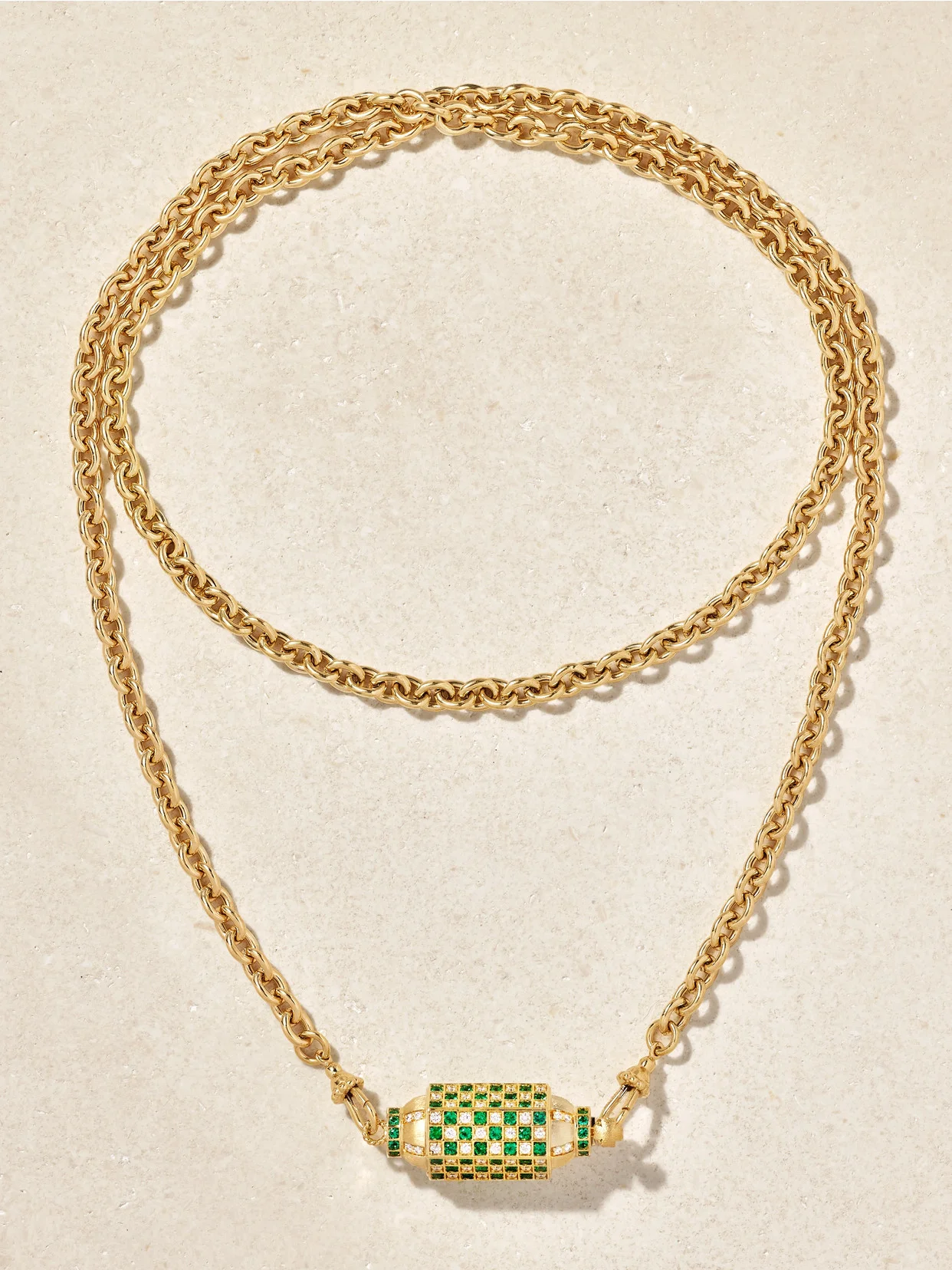 Marie Lichtenberg's 'Locket' necklaces are easily the brand's most instantly recognizable - and beloved - designs. Handmade from 18-karat gold, this version is set with an equal amount of emeralds and diamonds - 96 each - for a cool checked look. It's strung on a nearly 29-inch 'Rosa' chain that can be doubled up.