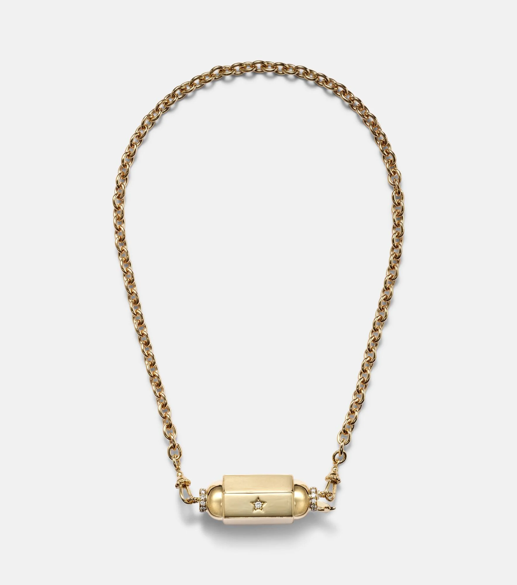 Product Details - Material: 18kt yellow gold (750/1000) - Made in Thailand - Item color: gold - Color: gold - Stone I: diamonds, VS1 clarity grade, F-G color grade, round-cut, flush setting - Stone I carat total weight (ctw): 0.78 - This piece features natural diamonds only - Item number: P00944569 Size & Fit - Length when open 37,5/42cm-15/16.5" - Width 5mm-0.2" - Pendant length 19mm-0.75" - Pendant width 53mm-2.1"