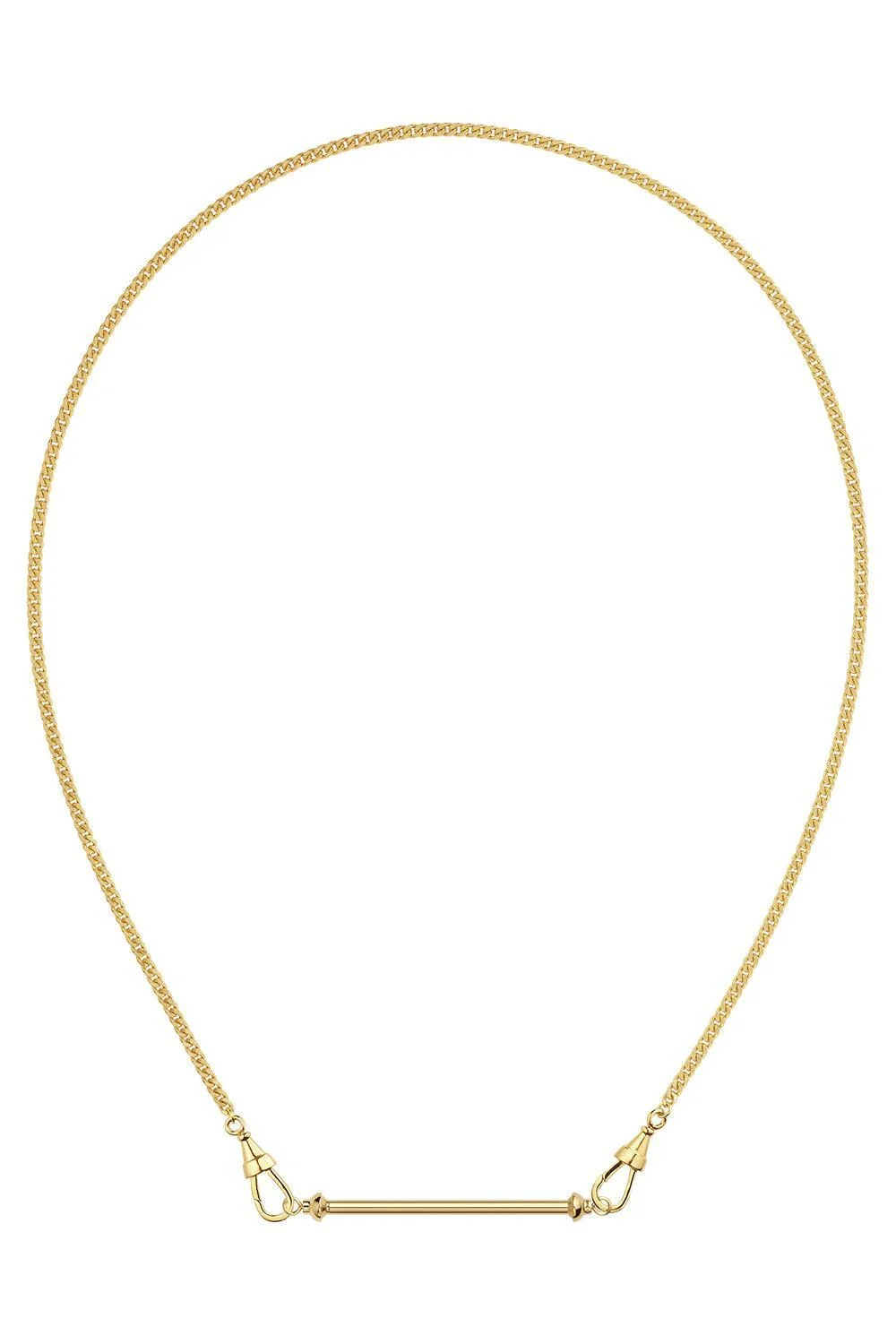 DETAILS AND INSIGHT Marie Lichtenberg large connector chain necklace in yellow gold. 18K Polished Yellow Gold This connector is a new way of wearing ML jewellery ! You can stack your pendants collection on it. Screw Opening System Pendant: 6.5cm L, Chain: 37cm L Style ML-01231-01197