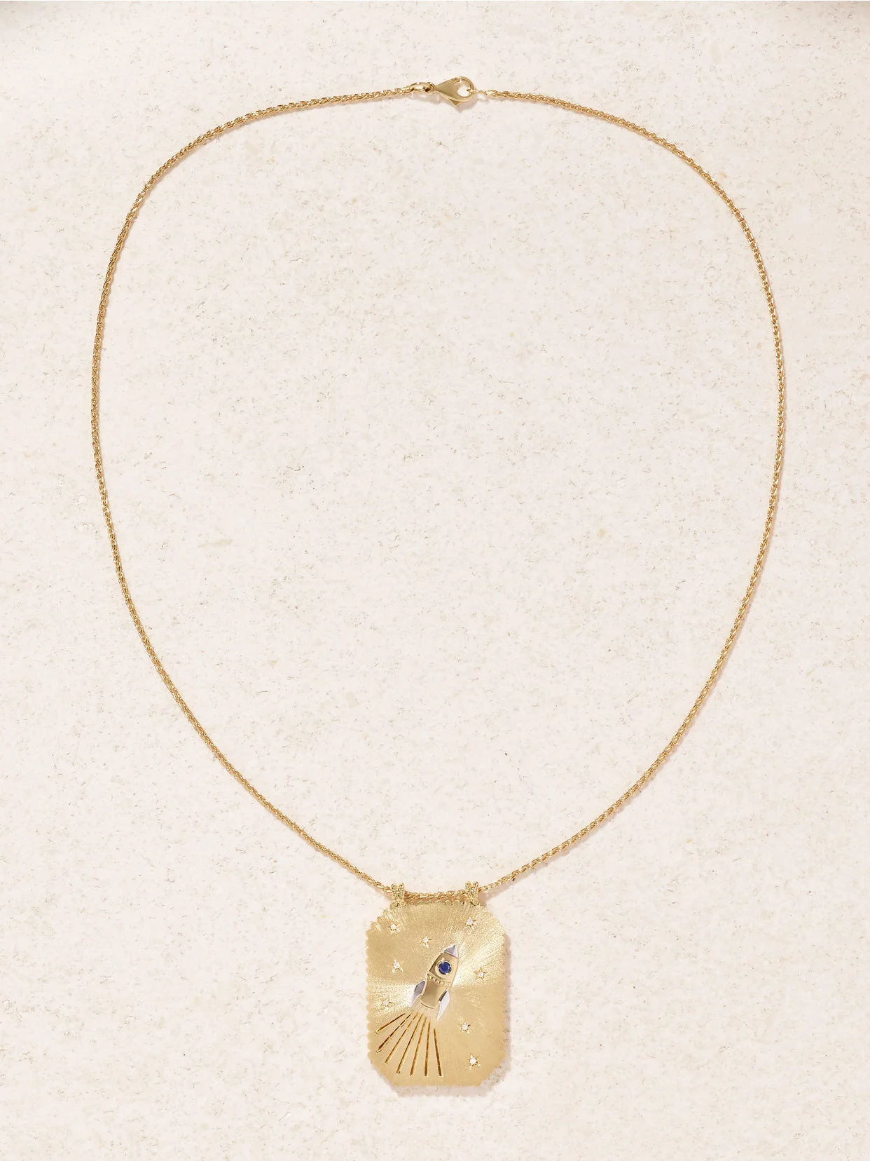 Marie Lichtenberg's signature 'Scapular' necklaces are rooted in symbolism, which makes each one feel really special. Strung on a 20-inch 'Spiga' chain, this version is handmade from 18-karat gold and features a white gold-tipped rock illuminated by a single sapphire and sky of twinkling diamonds. The back is engraved with the words 'love you to the moon"; making it such a sweet gift.