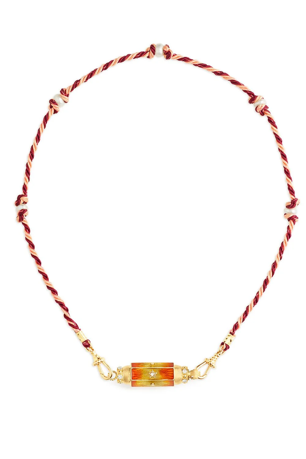 DETAILS AND INSIGHT Marie Lichtenberg orange baby locket in yellow gold. 14K Yellow Gold, Enamel, Mauli 0.26ct Diamond 35cm L Style ML-00769