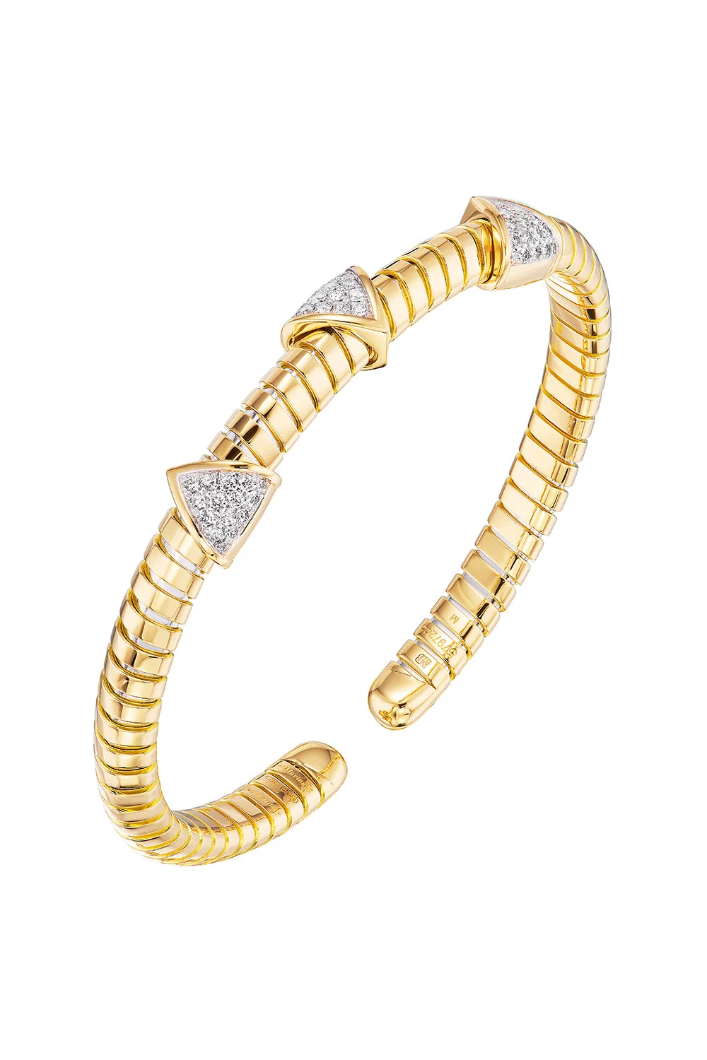 DETAILS AND INSIGHT Marina B diamond trisolina three claws bracelet in yellow gold. 18K Yellow Gold Pave Diamonds 0.42Cts 53X44Mm Style BRTM-09YDS