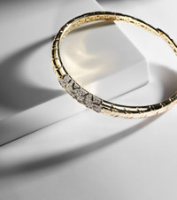 The iconic Onda collection, rooted in Marina B’s very beginnings, was created by the brand’s late founder to capture the fluid grace of waves — onda in Italian. Meticulously crafted from 18kt yellow gold, the Onda choker is defined by exquisite 3.28ctw pave-set diamonds and overlaid with intricate gold filigree. This piece is stamped with a unique serial number and the Marina B logo. Product Details - Material: 18kt yellow gold - Made in Italy - Item color: gold - Stone I: diamonds, 3.3ctw, round-cut, pave setting, D-F color grade, VVS-VS clarity grade - This piece features natural diamonds only - Item number: P00986225 Size & Fit - Max. width 12mm-0.45" - Circumference 33cm-13"