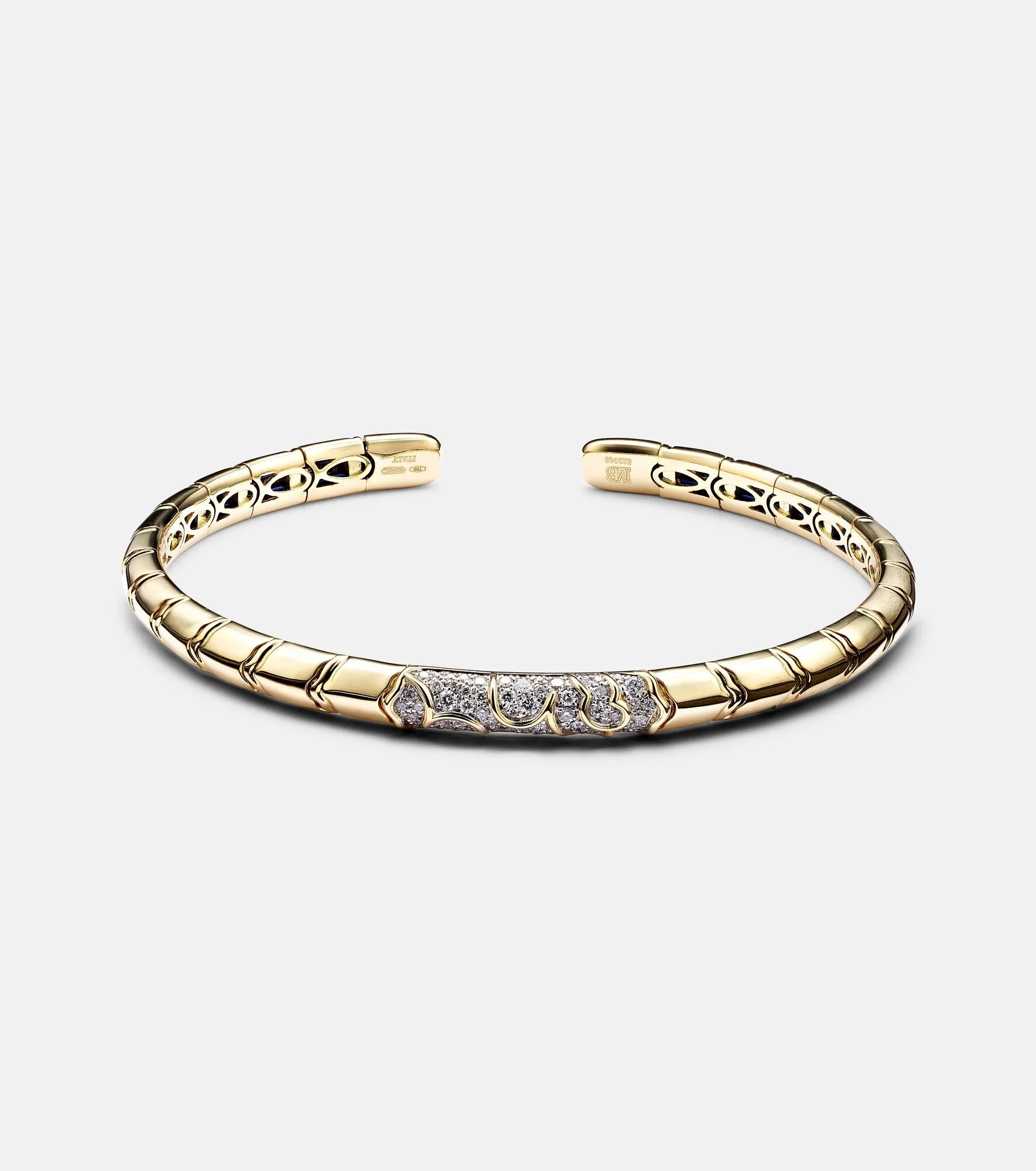 Product Details - Material: 18kt yellow gold - Made in Italy - Stone I: diamonds, round-cut, pave setting, VVS-VS clarity grade, D-F color grade - Stone I carat total weight (ctw): 0.32 - Item number: P00986231 Size & Fit - Max. width 5mm-0.2" - Circumference 17cm-6.5" - Opening 2,5cm-1"