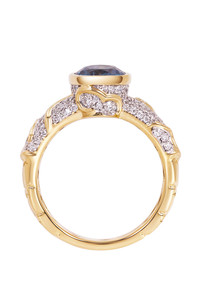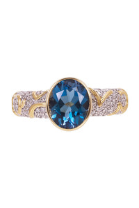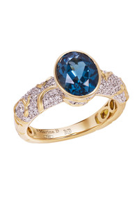 DETAILS AND INSIGHT Marina B swiss blue topaz diamond ondine ring in yellow gold. 18K Yellow Gold Swiss Blue Topaz 2.2Cts, Pave Diamonds 0.6Cts Style RIONP-02YBD6.5
