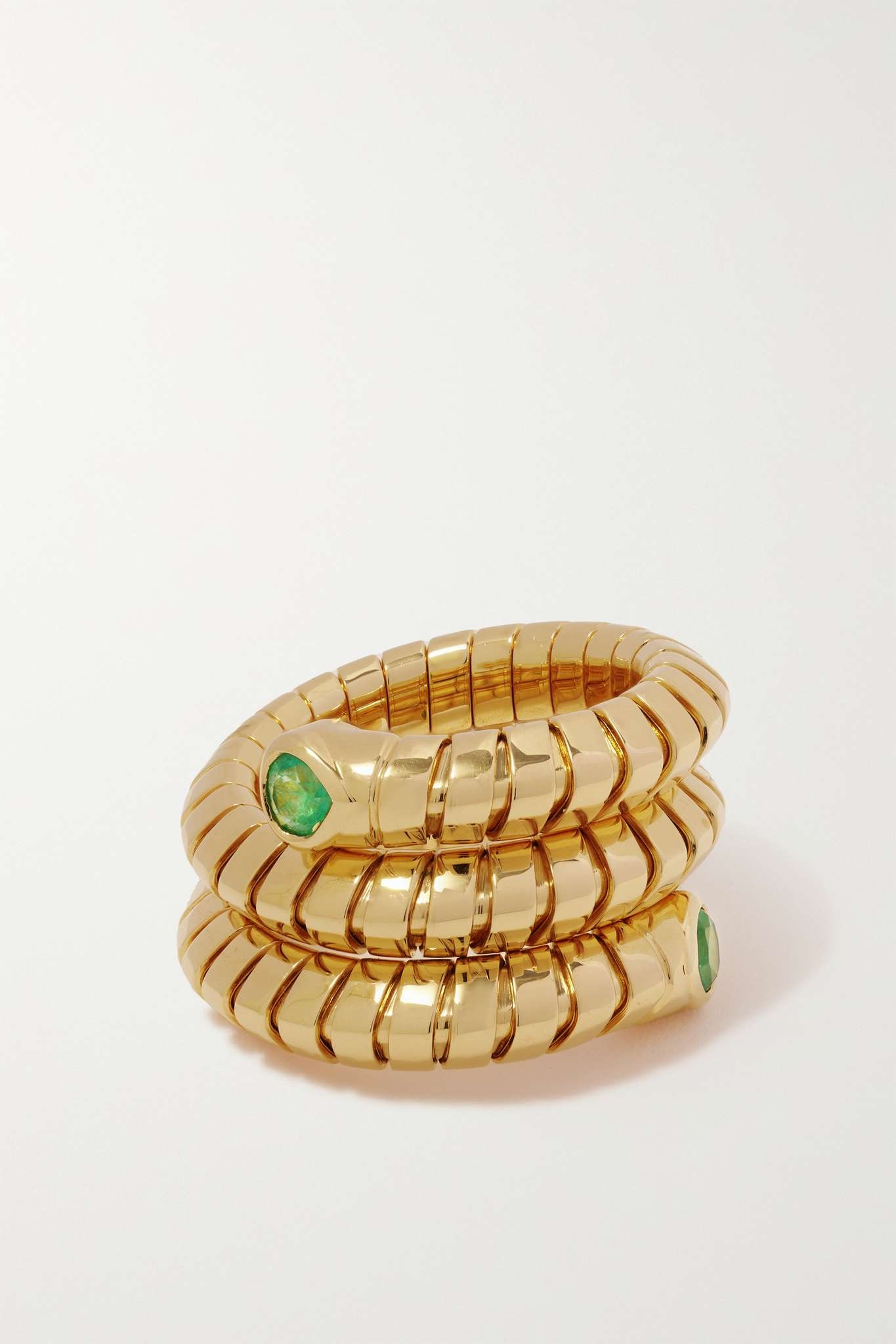 EDITORS'NOTES Guy Bedarida describes his role as creative director at Marina B as a "dream come true", and this reverence for the brand is certainly reflected in his work. Handcrafted at the label's Italian atelier, this 18-karat gold 'Trisola' ring has a signature tubular design that wraps beautifully around your finger. Complement the gleaming emerald tips with a neutral manicure. SIZE & FIT - US sizing - Measurements can be found in the link below DETAILS & CARE - Emeralds, total weight: 0.54-carats