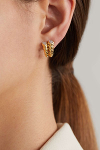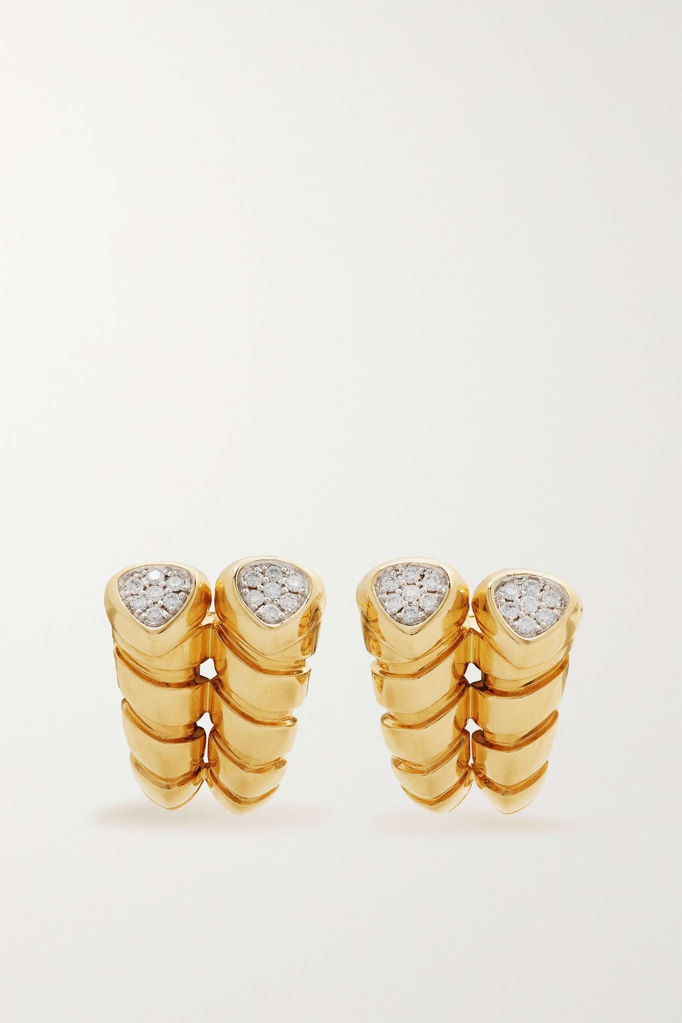 EDITORS'NOTES Marina B - that's 'B' for 'Bulgari' - has a longstanding heritage in fine jewelry. These 'Trisolina Double' earrings are crafted from 18-karat gold that's elegantly twirled like 'Tubogas' tubing. Diamonds shimmer at the tips to illuminate your complexion. SIZE & FIT This item’s measurements are: - Length: 1.5cm / 0.6in - Width: 1.2cm / 0.5in - Drop: 1.5cm / 0.6in DETAILS & CARE - Diamonds, total weight: 0.16-carats - Butterfly fastening for pierced ears