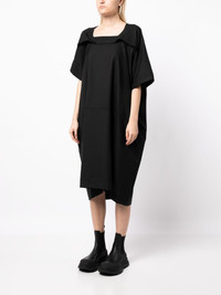 asymmetric midi wool dress Highlights - Black - Wool - Square neck - Layered details - Short sleeves - Drop shoulder - Asymmetric hem Imported Composition Wool 100% SIZE & FIT Model measurements Height 5 ft 9 in(1.76 m) Bust/Chest 31.1 in(79 cm) Hips 35.03 in(89 cm) Waist 24.4 in(62 cm) FittingInformation Designed to be unstructured, offering a loose fit throughout Made from a midweight non-stretch fabric This piece fits true to size – take your usual size