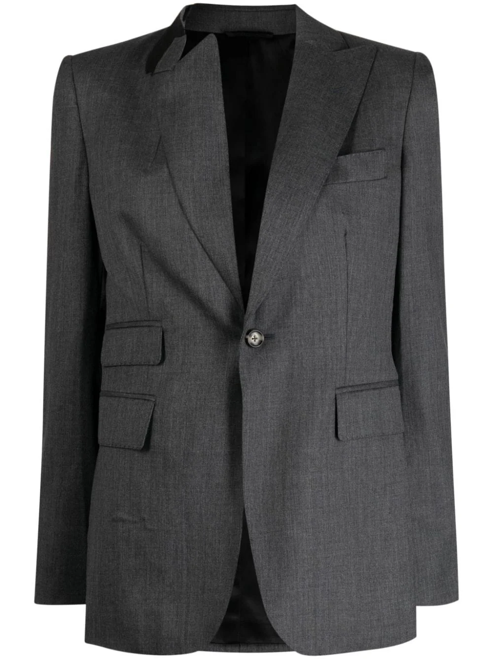 asymmetric single-breasted blazer Highlights - Charcoal grey - Wool - Asymmetric lapels - Front button fastening - Long sleeves - Buttoned cuffs - Chest welt pocket - Front flap pockets - English rear vents - Full lining Imported Composition Lining: Viscose 100% Outer: Wool 100% SIZE & FIT Model measurements Height 5 ft 9 in(1.76 m) Bust/Chest 31.1 in(79 cm) Hips 35.03 in(89 cm) Waist 24.4 in(62 cm)