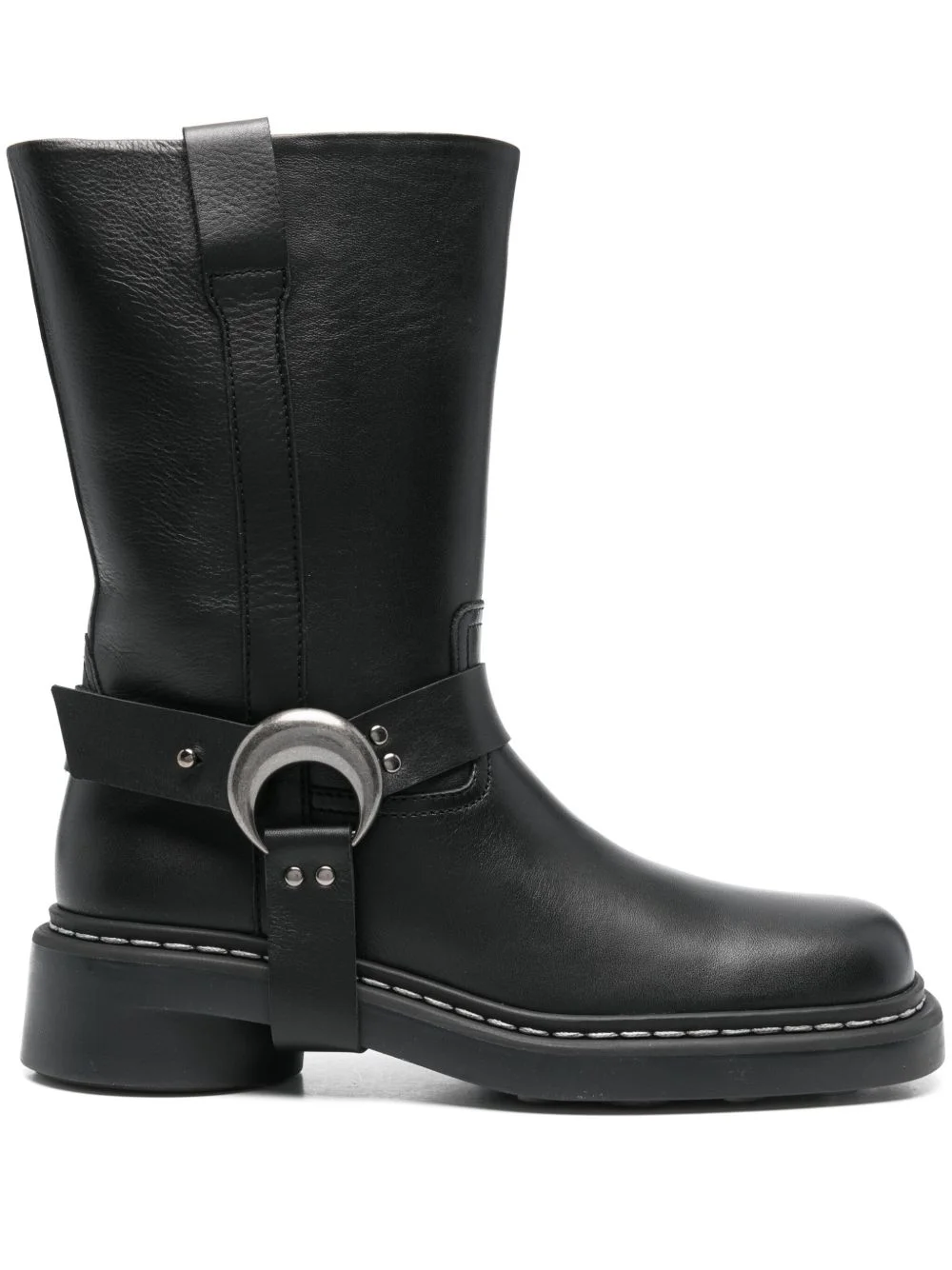 40mm MS Moto boots Highlights - Black - Low block heel - Ring hardware detailing - Square toe Imported Composition Lining: Calf Leather 100% Outer: Calf Leather 100% Sole: Rubber 100% SIZE & FIT Measurement HEEL 1.57 in(4 cm)
