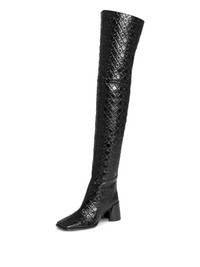 65mm monogram-embossed leather boots Highlights - Black - Side zip fastening - Elasticated side panels - Square toe - Mid block heel Imported Composition Lining: Leather 100% Sole: Leather 100% Outer: Leather 100% SIZE & FIT Measurement HEEL 2.55 in(6.5 cm)