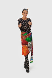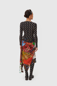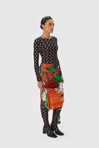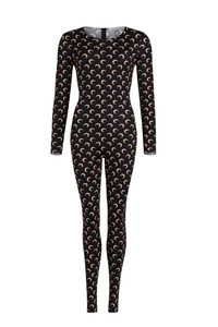 - Invisible zip in the back - Reinforced neckline - All Over Moon Print - Cuffs and hem finished with raw edges Materials All Over Moon Jersey Black The All Over Moon print is the banner of the House, it represents the house’s virtues and vision of Futurewear, ever present since the very beginning of the House for RADICAL CALL FOR LOVE. Indeed, what is perhaps the House’s most popular line holds its values at heart with a jersey composed entirely of recycled material. 88% Recycled Polyamide (GRS Certified), 12% Recycled Elastane