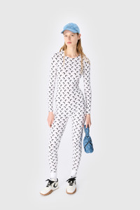 - Invisible zip in the back - Reinforced neckline - All Over Moon Print - Cuffs and hem finished with raw edges Materials All Over Moon Jersey White The All Over Moon print is the banner of the House, it represents the house’s virtues and vision of Futurewear, ever present since the very beginning of the House for RADICAL CALL FOR LOVE. Indeed, what is perhaps the House’s most popular line holds its values at heart with a jersey composed entirely of recycled material. 88% Polyamide (GRS Certified) - Recycled, 12% Elastane